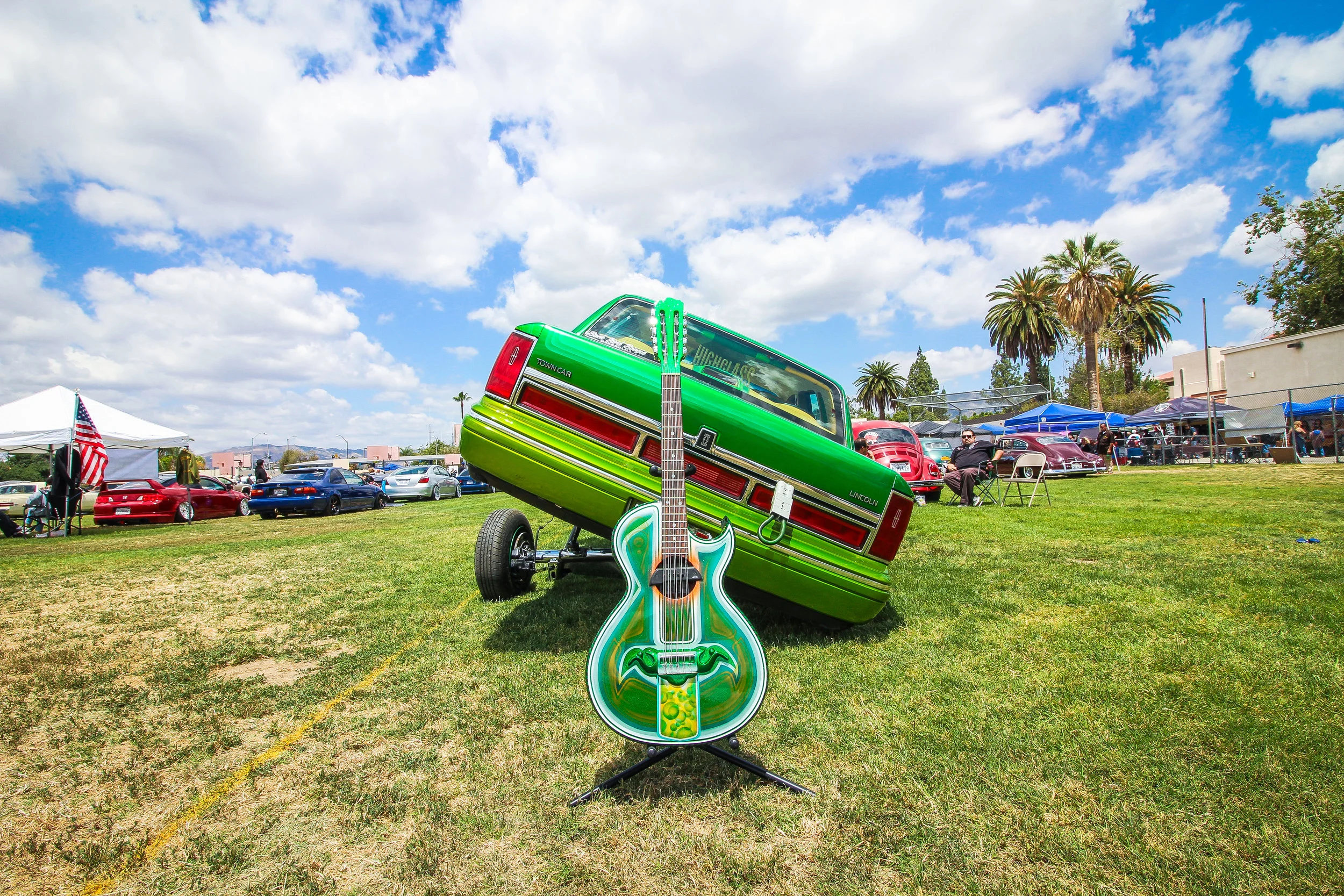 A cousins of mine, Beto Cardona, paints guitars in the same style as the lowrider cars he paints. He calls his guitar company Signature Custom Quintos. We went out to a lowrider show in the San Fernando Valley and shot his guitars next to the cars that inspire them. They are now becoming wildly popular among the Norteño and corrido spanish groups and singers.